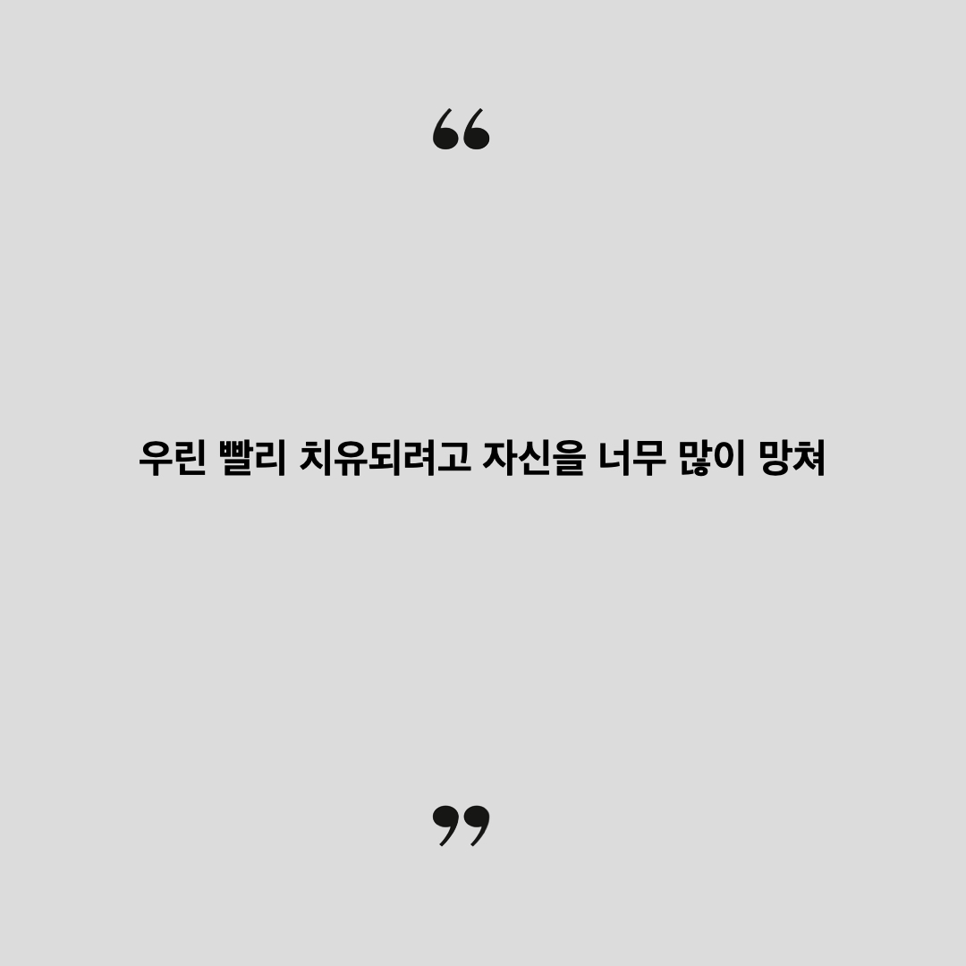 우린 빨리 치유되려고 자신을 너무 많이 망쳐. 그러다가 30살쯤 되면 파산하는 거지. 그러면 새로운 사람을 만날 때마다 줄 것이 점점 줄어든단다.